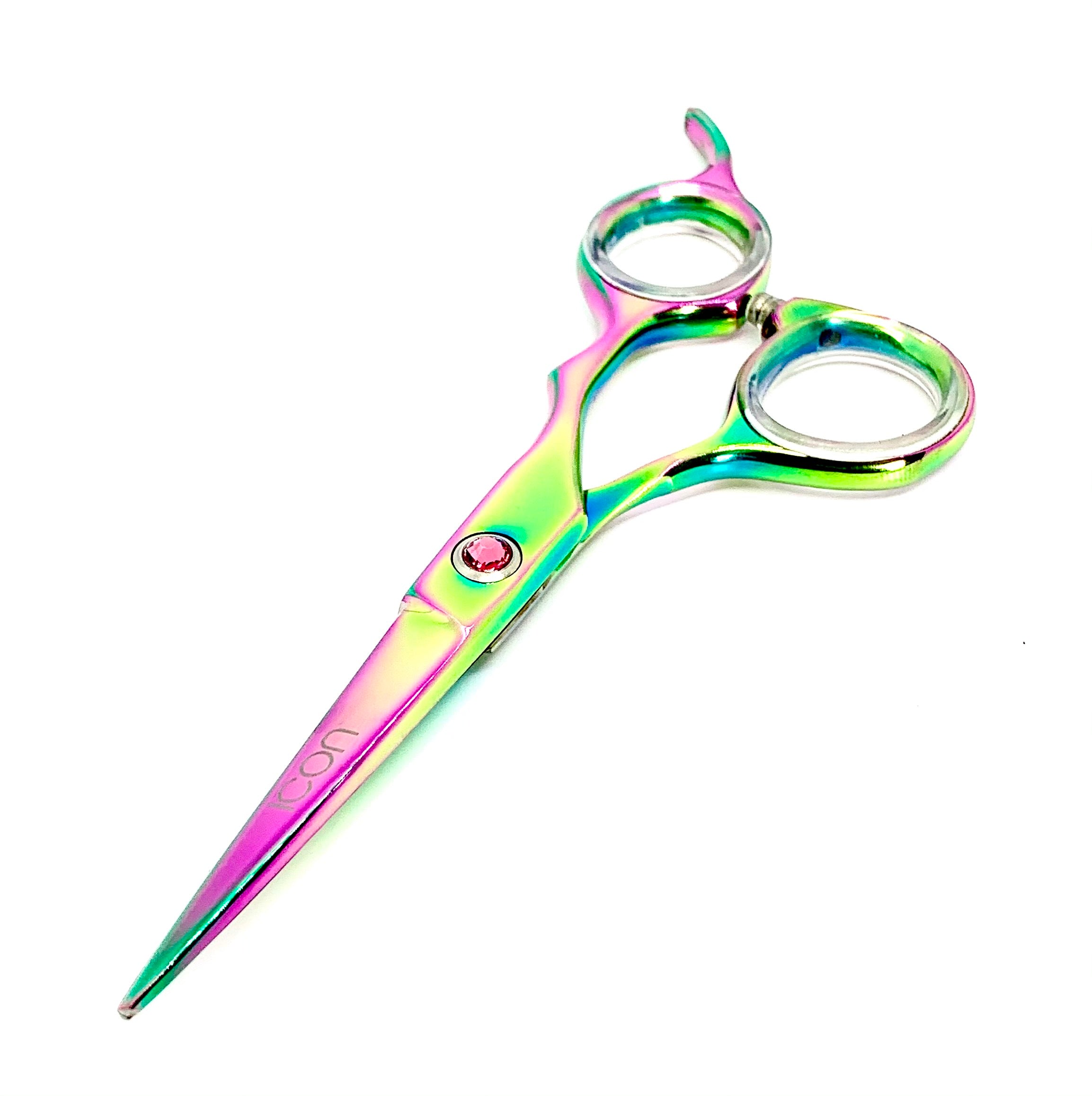 ICON 4.5" Multi-color detail, point cutting shear. Beautiful multi-color titanium coated shears with an offset handle. Well balanced with very sharp semi convex edge. These shears come with one year blade/edge warranty with one year unlimited sharpening and a lifetime warranty towards any manufacturing defects. 100% handmade by our shears experts.