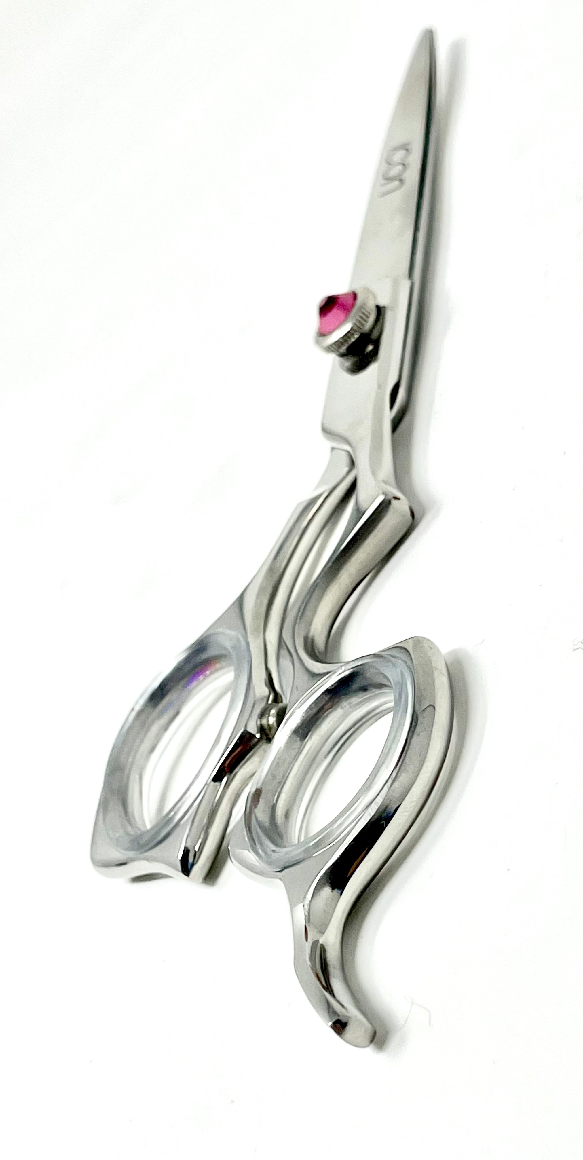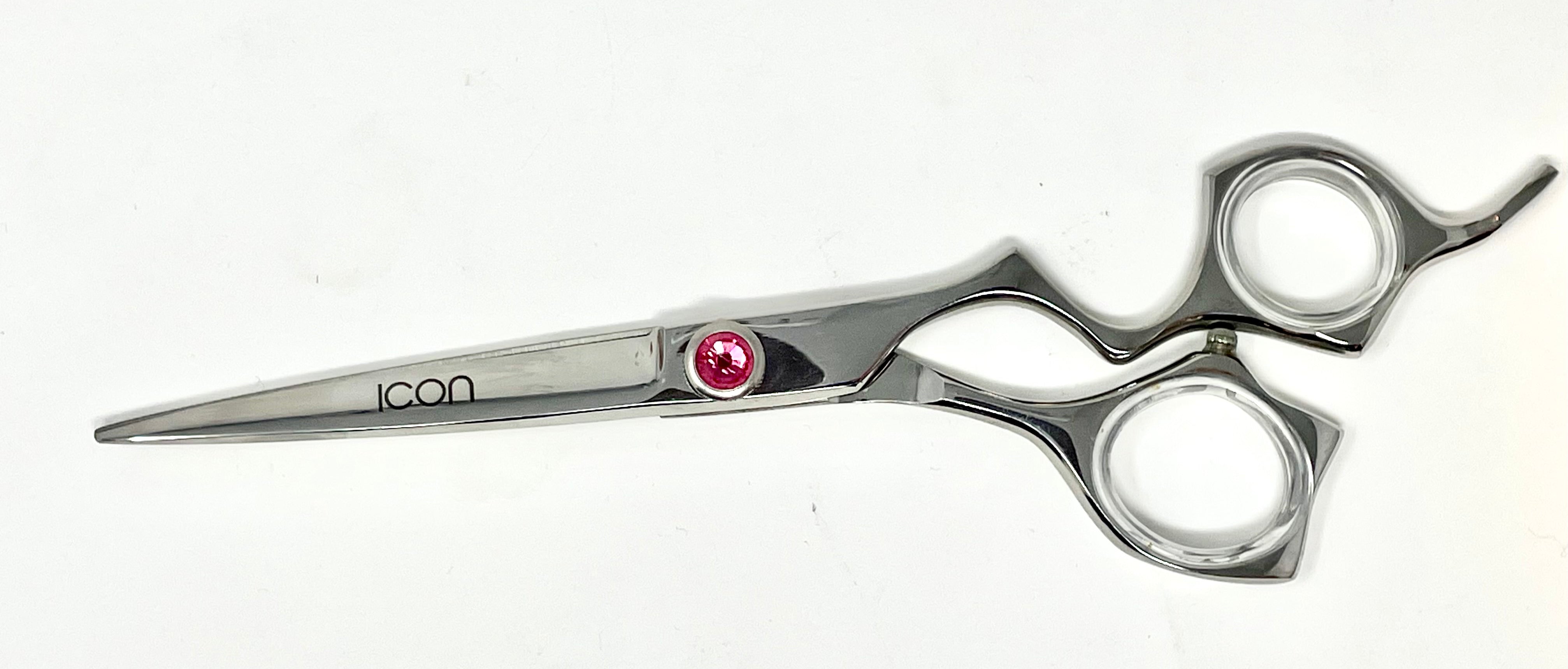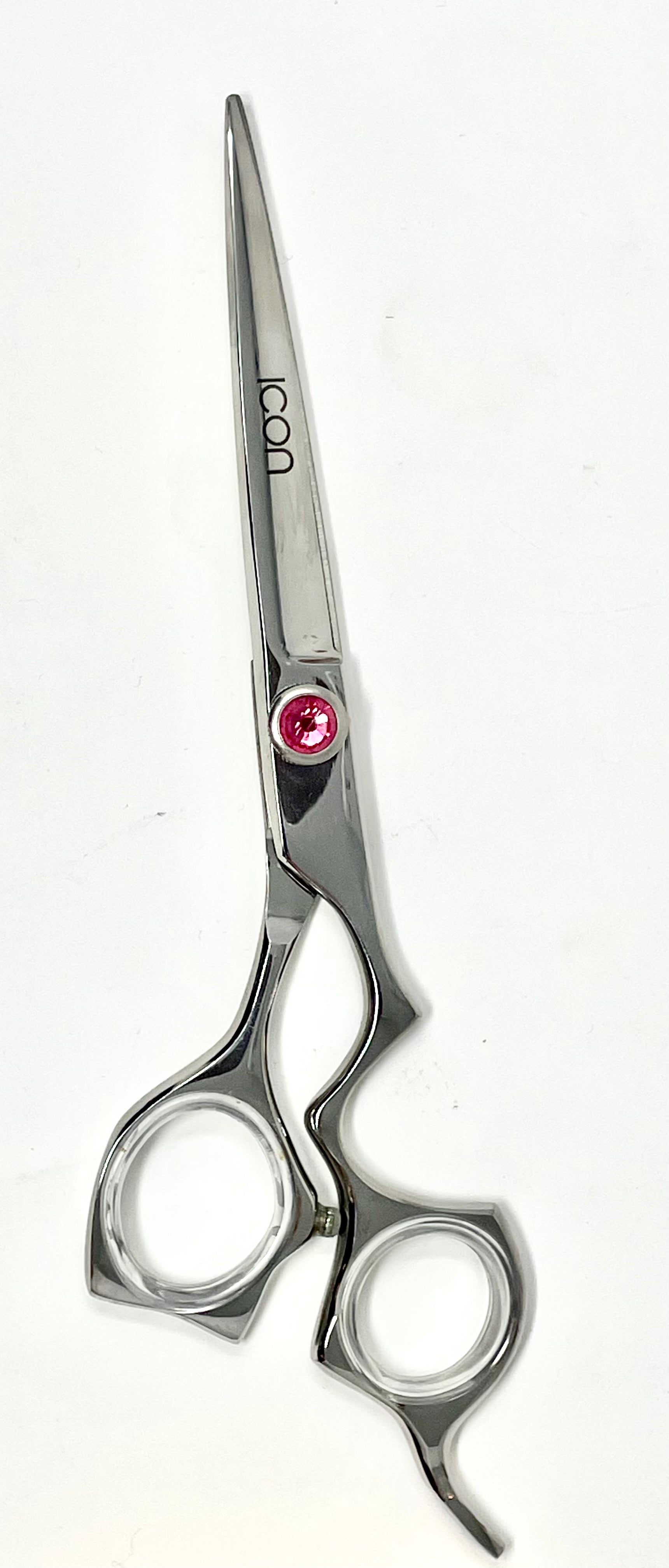 6.5" ICON Chrome shears with fixed finger rest. Offset handle and very well balanced. Very sharp semi-convex edge with flower design. These shears come with a one year blade/edge warranty with one year unlimited sharpening and a lifetime warranty towards any manufacturing defects. 100% handmade by our shears experts.