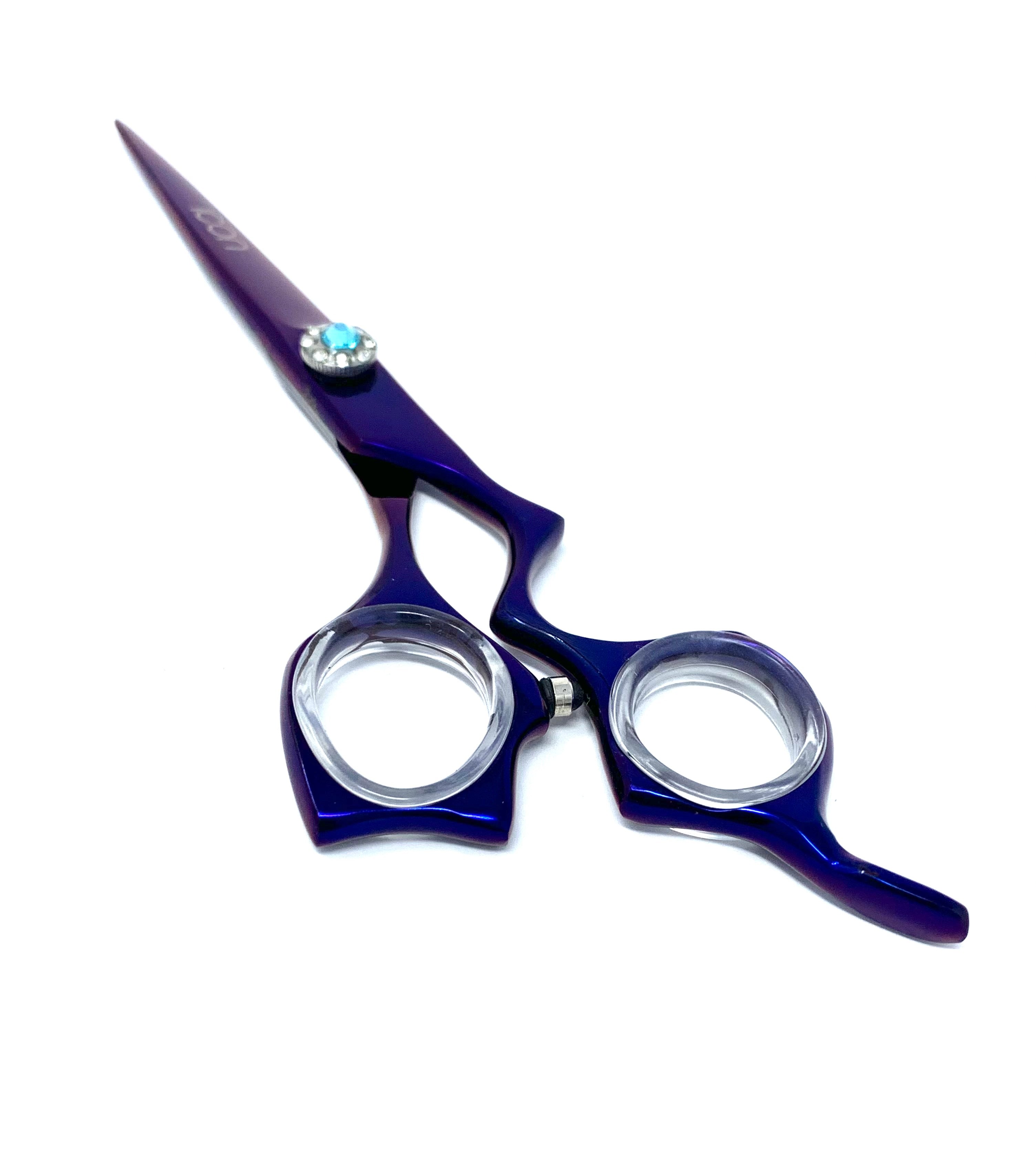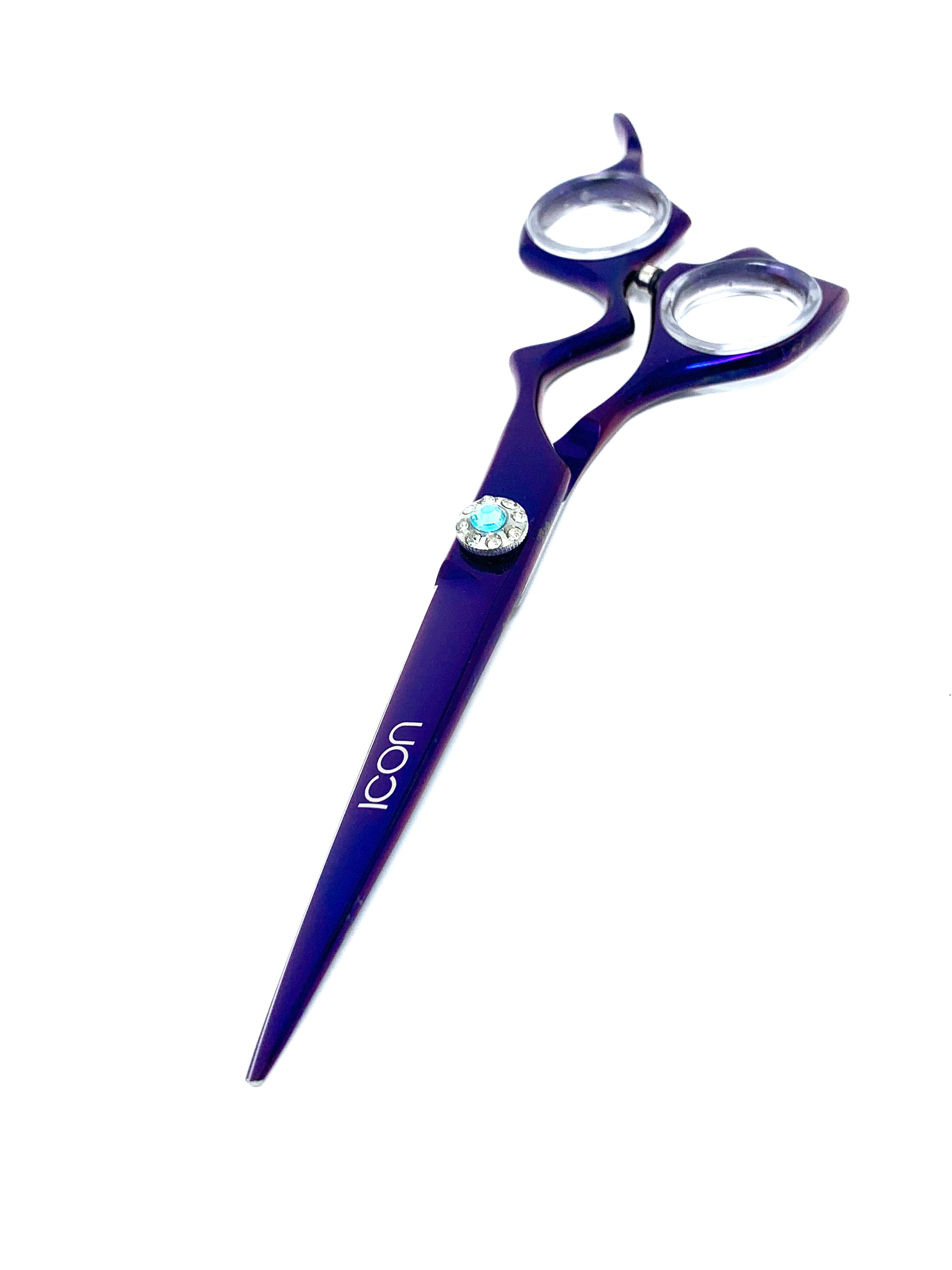 ICON 6.5" Purple hair cutting scissors with fixed finger rest. These shears have an offset handle and are well balanced with a very sharp semi-convex edge. These shears come with a one year blade/edge warranty with one year unlimited sharpening and a lifetime warranty towards any manufacturing defects. 100% handmade by our shears experts.