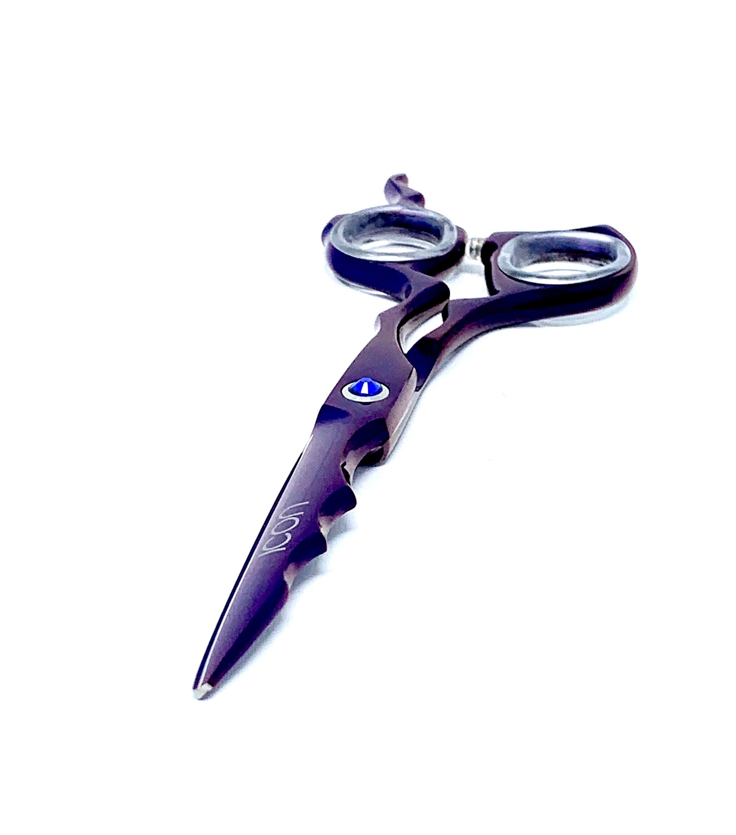 ICON 6" Purple shears with fixed finger rest. Well balanced with a very sharp semi-convex edge. These shears come with a one year blade/edge warranty with one year unlimited sharpening and a lifetime warranty towards any manufacturing defects. 100% handmade by our shears experts.