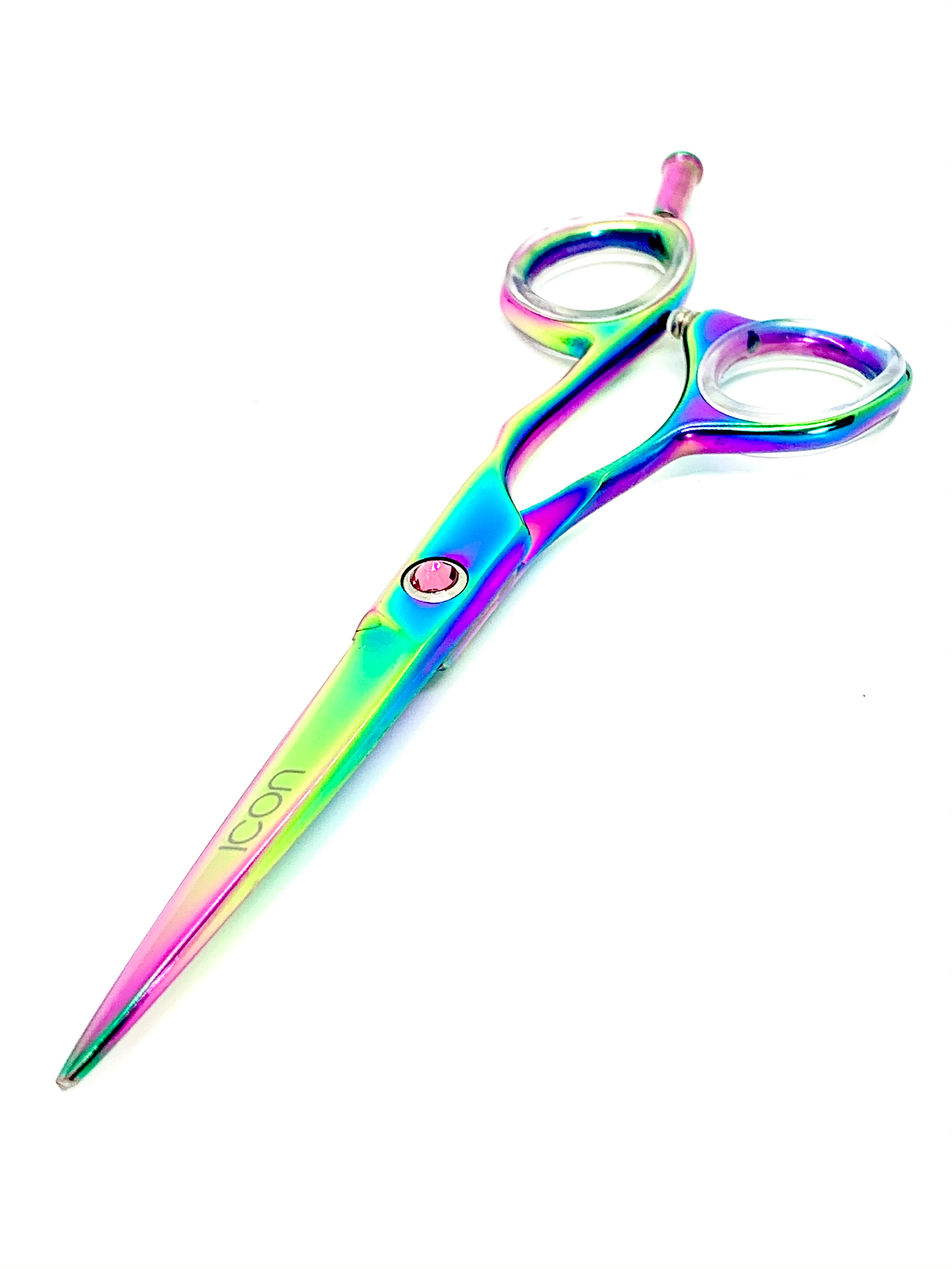 ICON 5.5" Multi-color shears with removeable finger rest. "THE BILLY" is one of our most popular models. These shears have an off-set handle and are well balanced with a very sharp semi-convex edge. These shears come with a one year blade/edge warranty with one year unlimited sharpening and a lifetime warranty towards any manufacturing defects. 100% handmade by our shears experts.