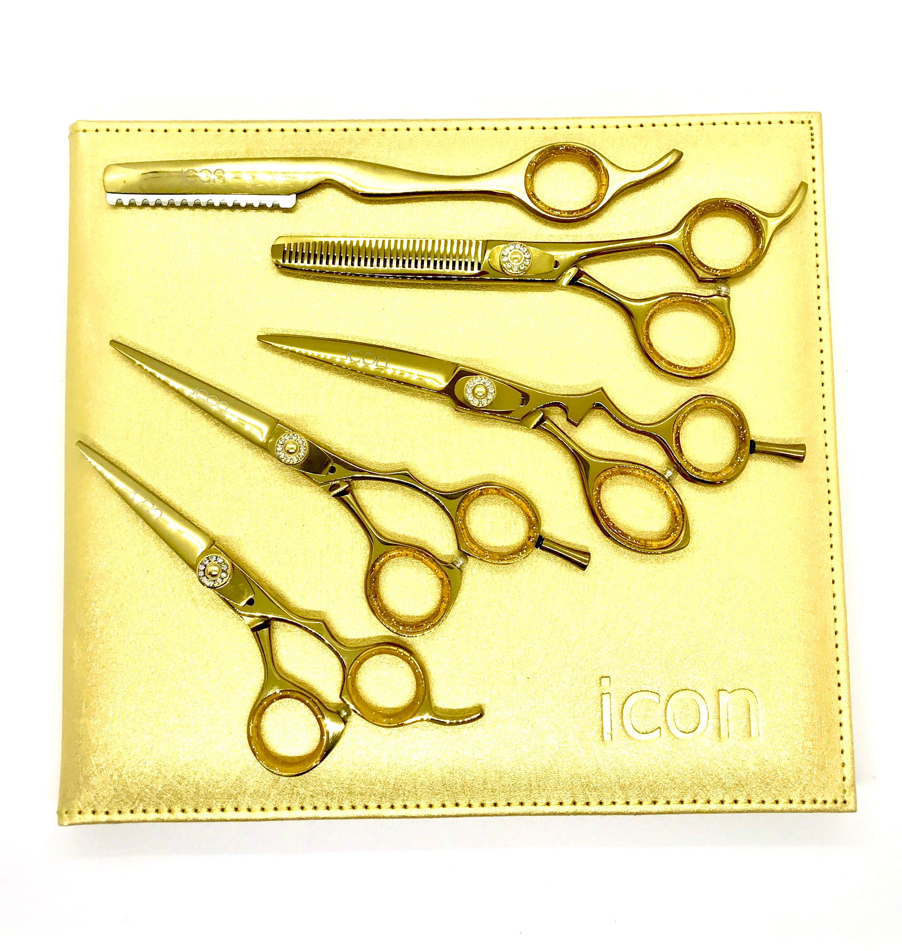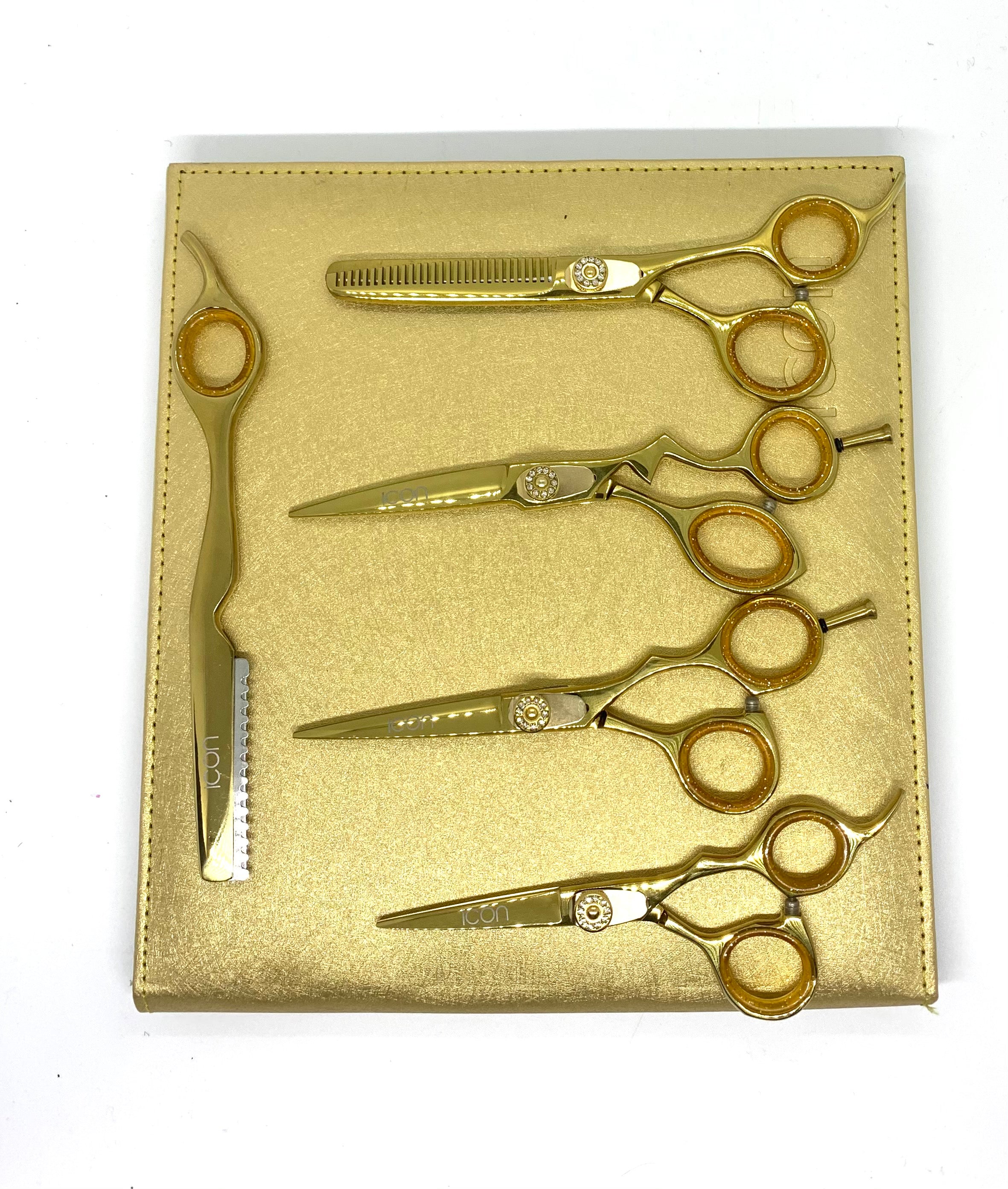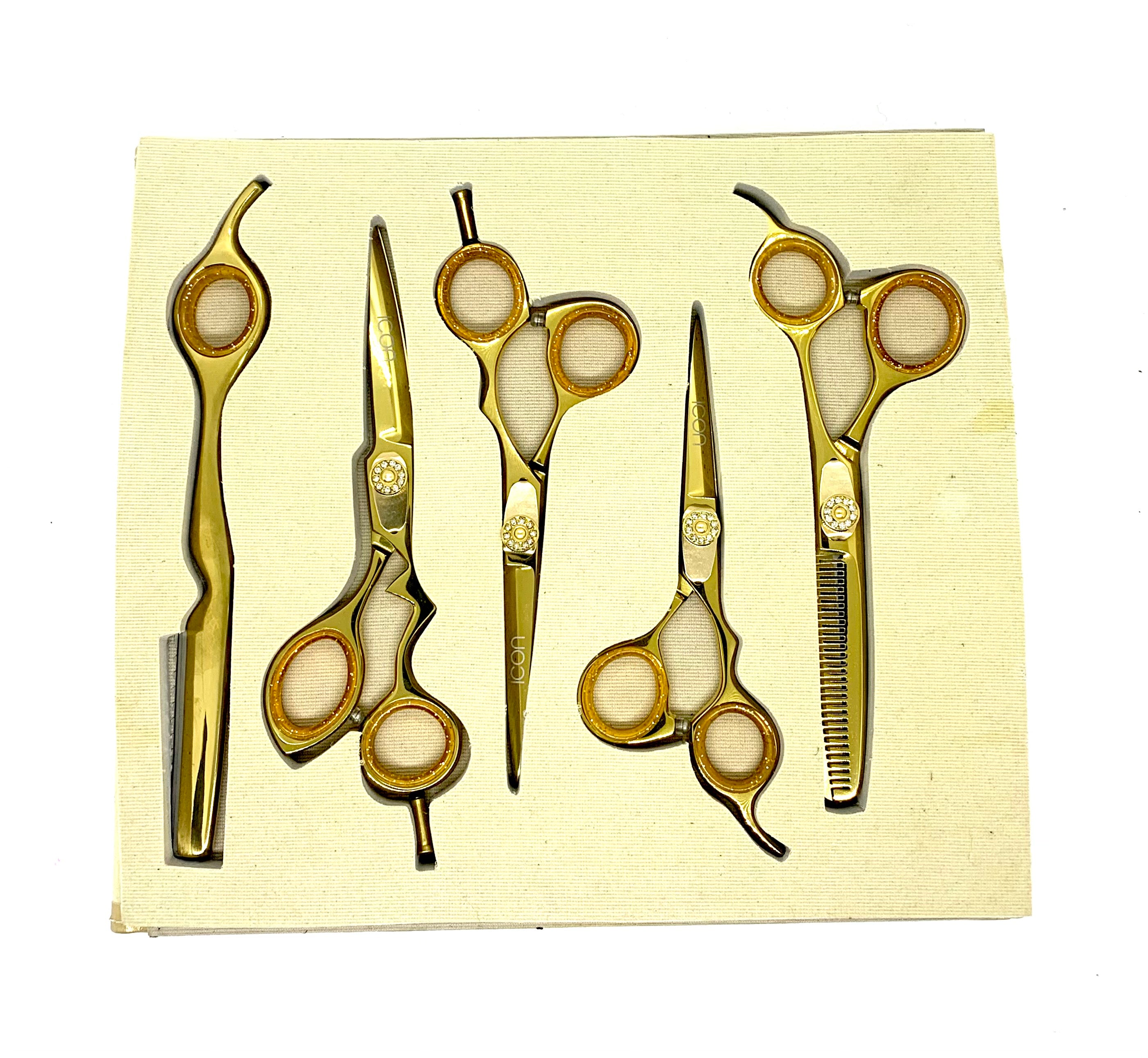 Everything you need, all in one set! Our Gold Rush Kit is sure to provide you with all the necessary tools for any styling technique. You will receive 4 hairstyling shears with our professional ergonomic design and a metal texturizing razor with a replaceable blade. You will also receive a beautiful gold case with space for all of your new shears.