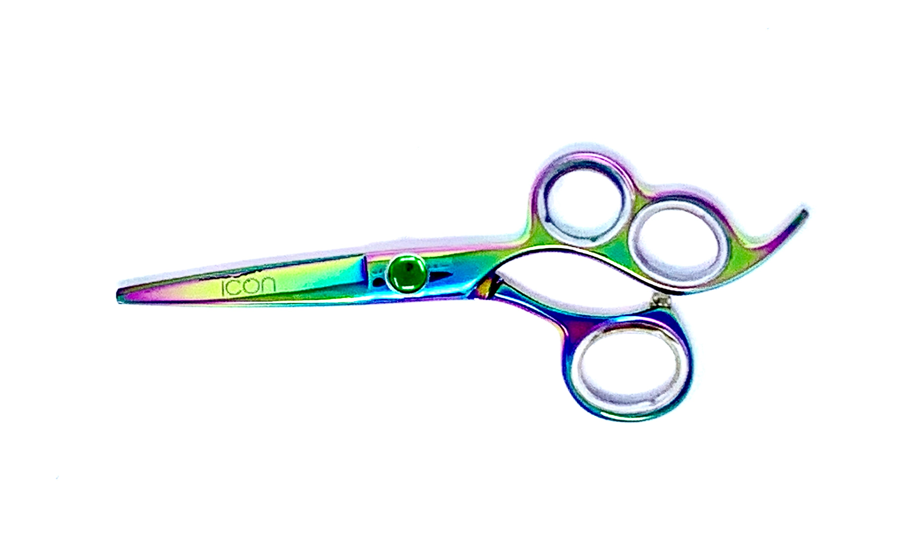 ICON 5.5" Multi-color shears with fixed finger rest. These 3-ring shears have an off-set handle and are well balanced with a very sharp semi-convex edge. These shears come with a one year blade/edge warranty with one year unlimited sharpening and a lifetime warranty towards any manufacturing defects. 100% handmade by our shears experts.