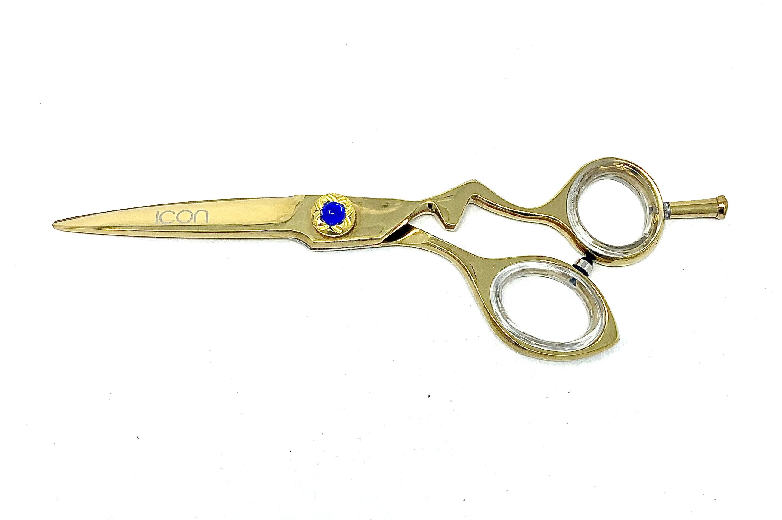 6.0" ICON Gold speed cutting shears with removeable finger rest. These shears have an offset handle and are well balanced with a very sharp semi-convex edge. These shears come with a one year blade/edge warranty with one year unlimited sharpening and a lifetime warranty towards any manufacturing defects. 100% handmade by our shears experts.